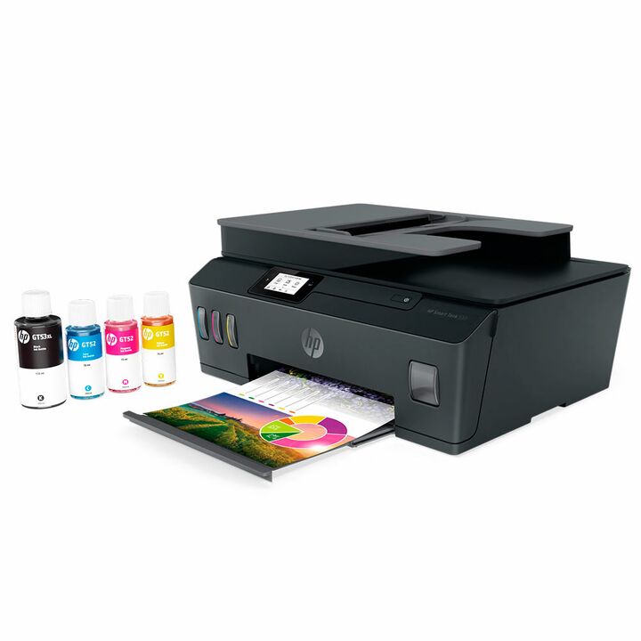 Impresora Todo-en-Uno HP Smart Tank 530 inalámbrica - 4SB24A Esta impresora de tanque de tinta de alta capacidad con un alimentador de documentos automático ofrece calidad garantizada y hasta 12,000 páginas en negro y hasta 8,000 páginas a color. Obtenga conexiones más rápidas con banda dual Wi-Fi e...