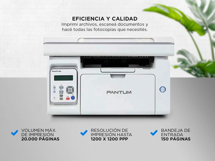 Pensada para la casa o la oficina, esta impresora Pantum es ideal para todo tipo de trabajos, ya sean grandes tiradas o pocas impresiones. Eficiencia y calidad Imprimí archivos, escaneá documentos y hacé todas las fotocopias que necesités con esta impresora multifunción Pantum, siempre lista para fa...