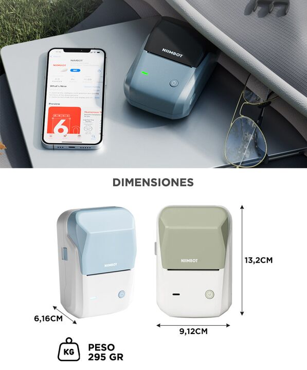 Impresión térmica sin tinta ni tóner: La impresora térmica portátil NIIMBOT B1 utiliza tecnología de impresión directa, eliminando la necesidad de cartuchos y reduciendo costos de mantenimiento en el uso diario. Portátil y liviana para uso flexible: Su diseño compacto permite transportarla fácilment...
