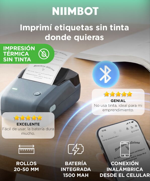 Impresora Térmica Portátil Niimbot B1 Etiquetadora Rollos 20-50mm (Verde)