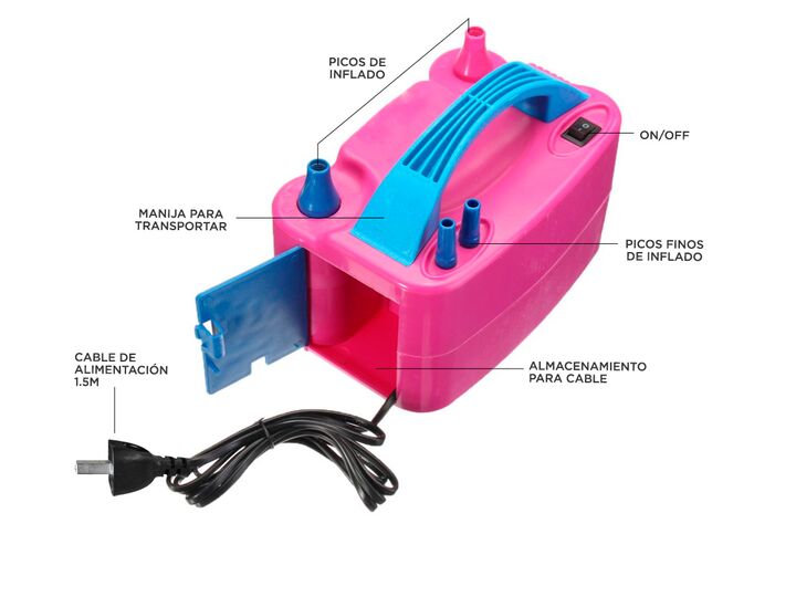 De diseño ligero y atractivo, es ideal para inflar globos cumpleaños, boda o cualquier otra ocasión de celebración. Sus boquillas especiales facilitan el funcionamiento y la acción de inflado que se inicia al pulsar la boquilla y se detiene inmediatamente al liberarla, incluso, si es necesario infla...