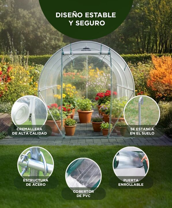 Espacio amplio para cultivar cómodamente: El Invernadero South Port by Gadnic INV03 ofrece 200 cm de altura, permitiendo ingresar sin agacharse y trabajar cómodamente en tus plantas. Su formato de 200x300 cm brinda gran capacidad interior. Protección climática durante todo el año: La cubierta transp...