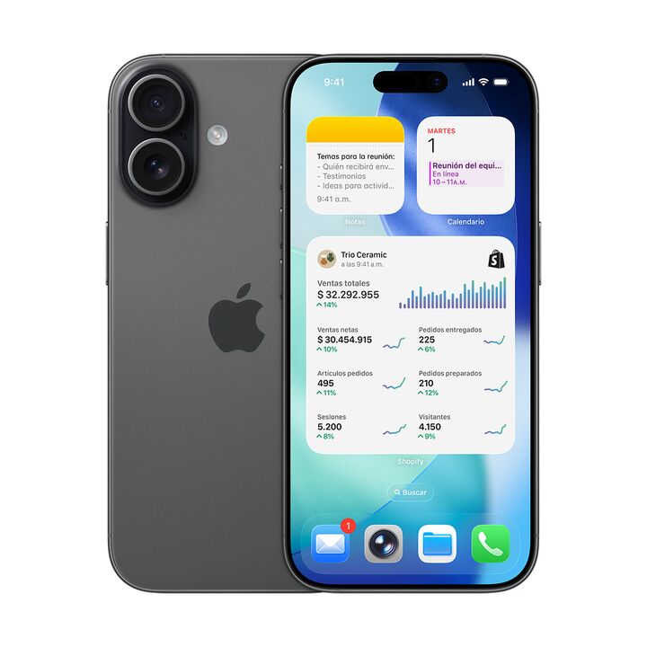 iPhone 17 Apple 6.3 512GB Camara 48MP Ceramic Shield 2 - Black iPhone 17. Aún más sorprendente. Aún más resistente. Pantalla ProMotion de 6.3, Ceramic Shield 2, cámaras traseras de 48 MP, cámara frontal Center Stage, chip A19 y más. • AÚN MÁS SORPRENDENTE. AÚN MÁS RESISTENTE. El iPhone 17 viene en c...