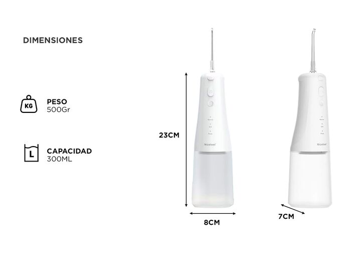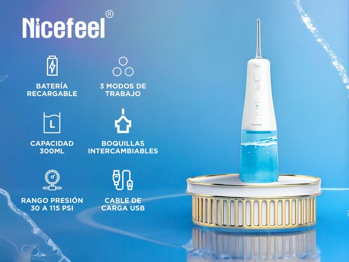 Nicefeel presenta el nuevo Irrigador Dental de Agua Inalámbrico: Capacidad del Tanque de Agua: 300 ml, ofreciendo un tiempo adecuado para una limpieza completa sin necesidad de recargas frecuentes. Modos de Funcionamiento: Cuatro modos ajustables para adaptarse a diversas necesidades de higiene buca...