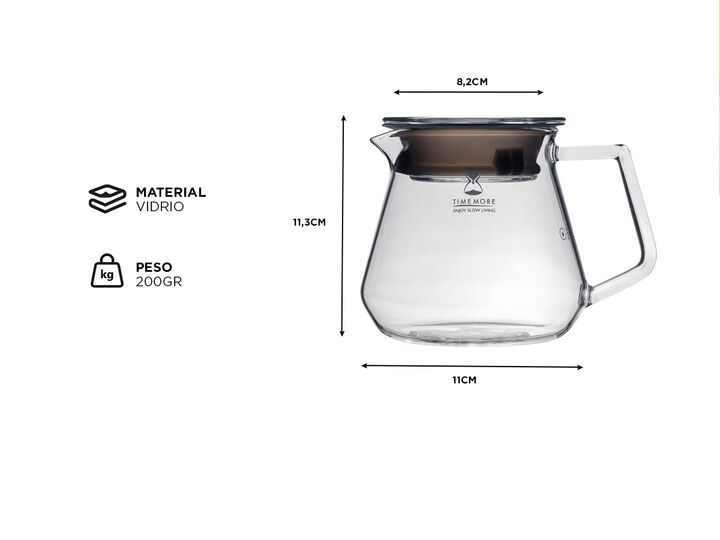Nueva Jarra Server de Vidrio Timemore Facilidad y funcionalidad: Diseñada para simplificar tu experiencia cafetera, esta jarra destaca por su fácil uso y limpieza, permitiéndote disfrutar plenamente cada taza de café. Su construcción en vidrio a prueba de calor asegura que cada bebida se mantenga a ...