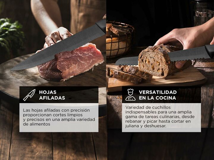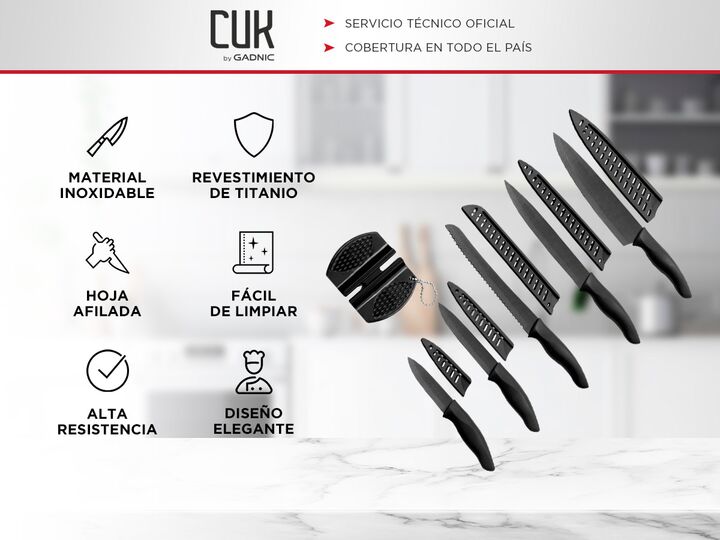 Cuk by Gadnic presenta el nuevo Set x6 Piezas Cuchillos De Cocina: Calidad Premium: Fabricados con acero inoxidable de alta calidad y moldeados con precisión para garantizar una durabilidad excepcional y un rendimiento superior. Revestimiento de Titanio: El revestimiento de titanio proporciona una s...