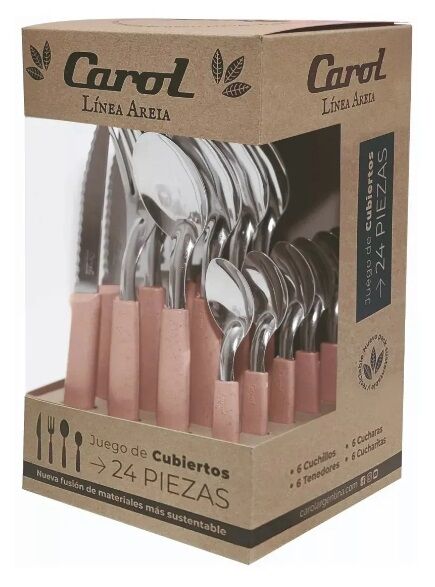 Juego De Cubiertos 24 Piezas Carol Areia Rosa 31124-ARR