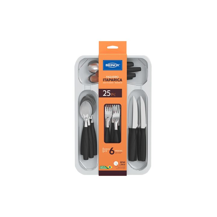 Juego De Cubiertos 24 Piezas con cubiertera Itaparica Brinox Negro 6000716
