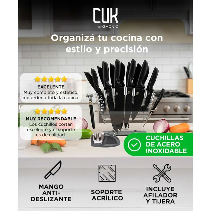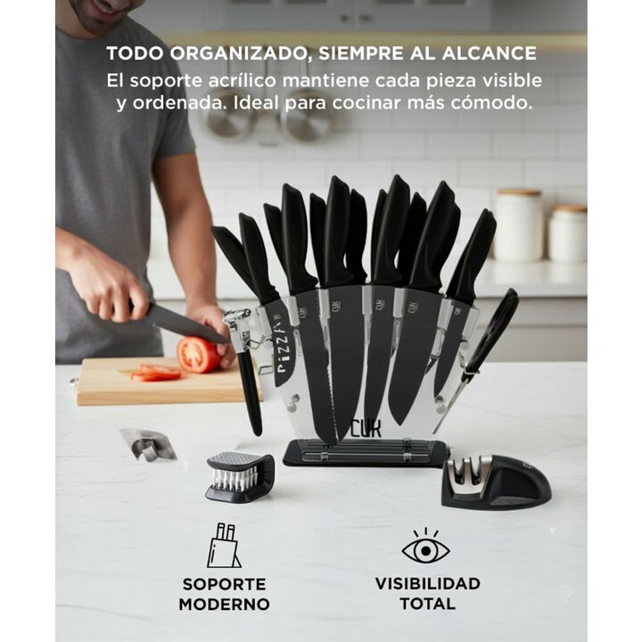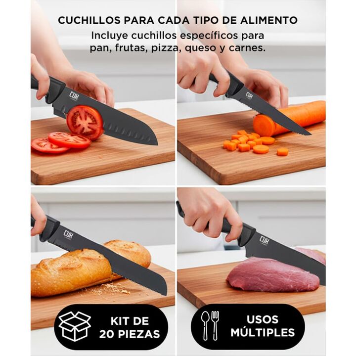 ¡Descubrí la excelencia culinaria con nuestro juego de cuchillos de 20 piezas! Con una cuidadosa combinación de materiales de primera calidad, como el resistente acero inoxidable y el duradero polipropileno, nuestros cuchillos ofrecen un equilibrio perfecto entre rendimiento, durabilidad y elegancia...