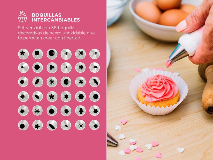 ¡Descubrí nuestro increíble set decorativo para tortas, diseñado para satisfacer todas tus necesidades de decoración de repostería con facilidad y profesionalismo! Nuestro set completo incluye todo lo que necesitas para crear impresionantes decoraciones para repostería. Con boquillas antiadherentes ...