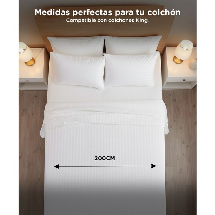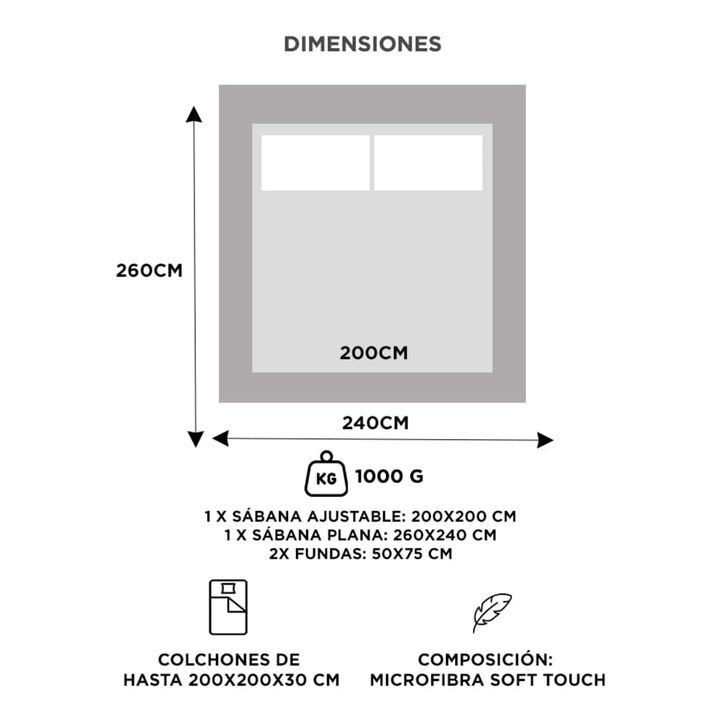 Descubrí el descanso perfecto con el juego de sábanas Rieti by Gadnic. Confeccionadas en microfibra algodonada de poliéster, estas sábanas te envuelven en una suavidad única, brindándote el máximo confort noche tras noche. Tamaño King Size: ideal para colchones de hasta 200x200x30 cm. Sábana ajustab...
