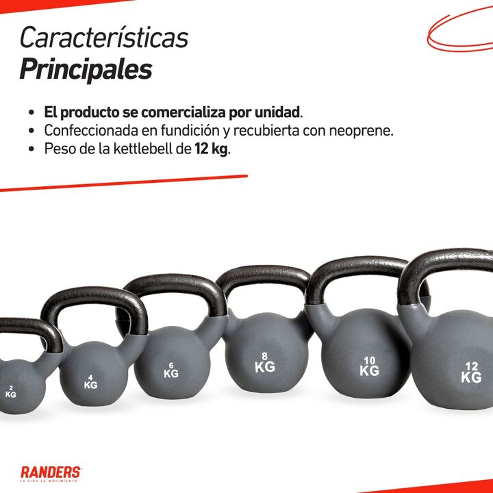 Dale variedad a tu entrenamiento con la Kettlebell ARG-NKET-012 de 12 kg. Confeccionada en fundición y recubierta con neoprene de primera calidad, esta pesa rusa importada ofrece durabilidad y un agarre cómodo para cada ejercicio. Su diseño ergonómico permite movimientos fluidos y seguros, ideal tan...