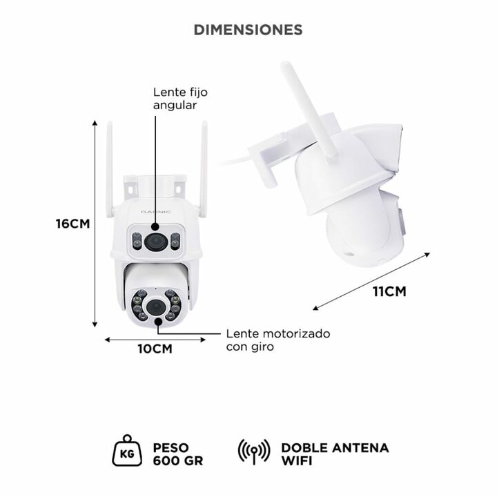 Vigilancia en ultra alta definición La cámara Gadnic Doble Lente 4K ofrece imágenes nítidas con dos sensores de 8 MP reales. Captura cada detalle en calidad 4K, ideal para proteger tu hogar o comercio con máxima claridad. Visión nocturna que no se detiene Gracias a su sistema de luces infrarrojas y ...