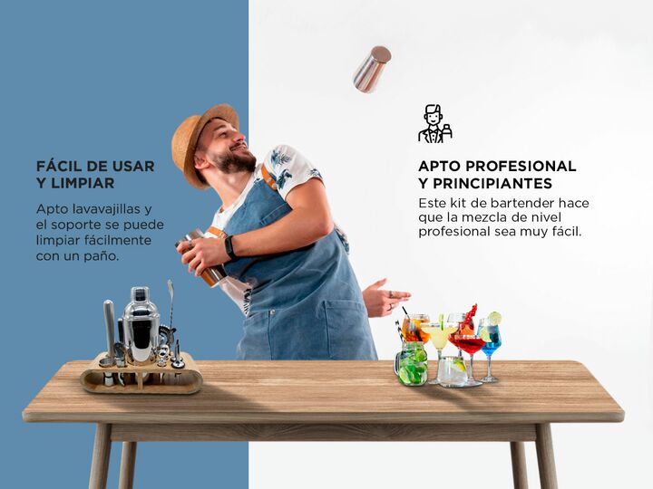 Kit Barman Profesional Gadnic BST44 Coctelera + Herramientas