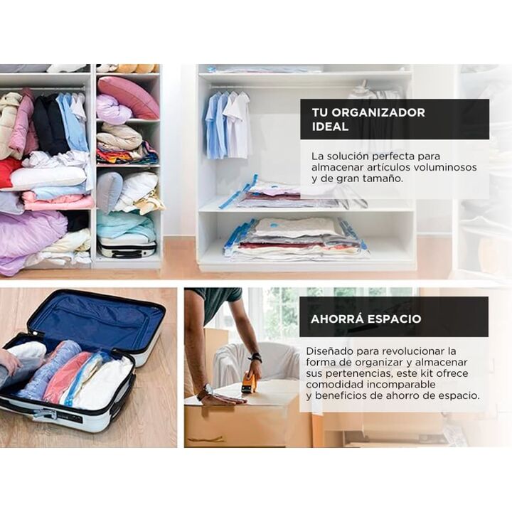 ¡Presentamos la solución de almacenamiento definitiva! El kit de bolsa de almacenamiento al vacío con bomba manual. Diseñado para revolucionar la forma de organizar y almacenar sus pertenencias, este kit ofrece comodidad incomparable y beneficios de ahorro de espacio. Con cuatro bolsas de almacenami...