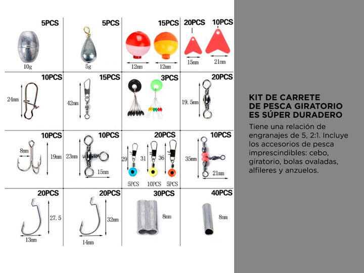 ¡Presentamos el Nuevo Kit de Pesca Gadnic! Este kit incluye un carrete de pesca giratorio de alta durabilidad, con una relación de engranajes de 5,2:1, garantizando un rendimiento suave y eficiente. Además, cuenta con todos los accesorios esenciales para una experiencia de pesca completa: cebo, gira...