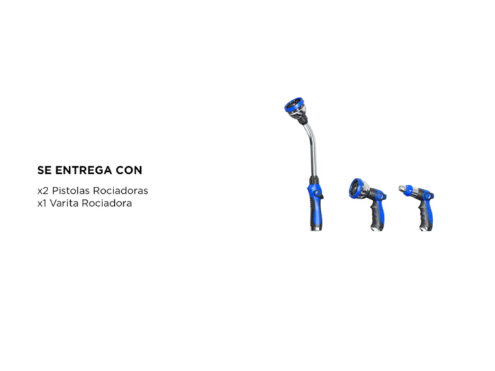 Kit de tres rociadores Esta herramienta esencial para tu jardín ofrece un excelente control de pulverización de agua a presión, ideal para una amplia gama de tareas. Con un diseño ergonómico y ajustable, este rociador es cómodo de usar, sin importar el tamaño de tus manos, ya sean delgadas o robusta...