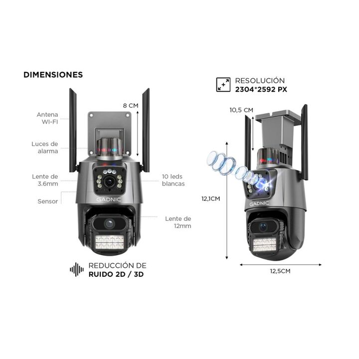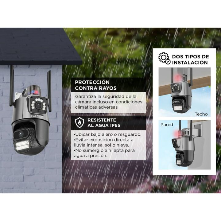 ¡Presentamos la Cámara de Seguridad Dual, una solución de vigilancia avanzada para proteger lo que más importa! Con su lente dual, esta cámara ofrece lo mejor de ambos mundos. Un lente fijo proporciona una vista amplia y constante, mientras que el PTZ te permite controlar el movimiento y el zoom de ...