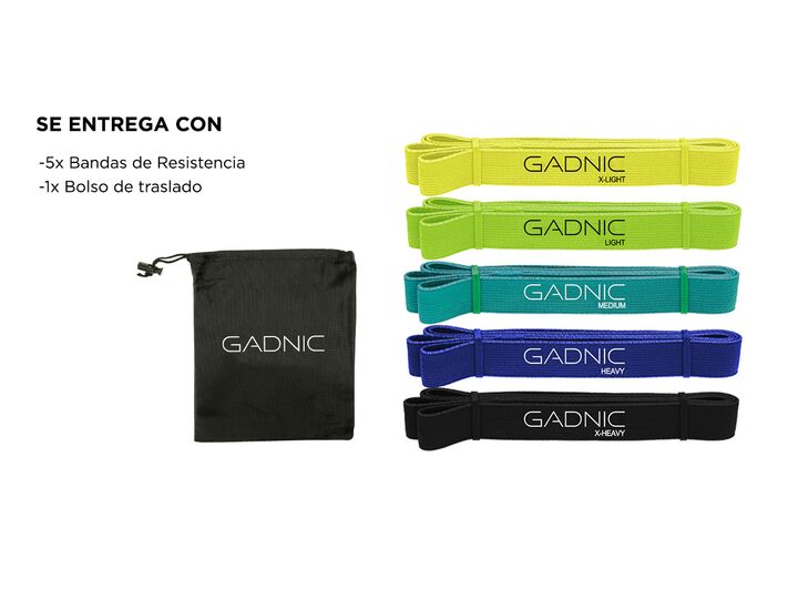 ¡Entrená tu cuerpo con el Kit de 5 Bandas Isométricas Gadnic! Especificaciones 5 Bandas elásticas Polyester Largas para hacer todo tipo de ejercicios Material Polyester 5 resistencias diferentes: extra liviana, liviana, mediana, fuerte, extra fuerte. Ideal para ejercicio y rehabilitación. Ideales pa...