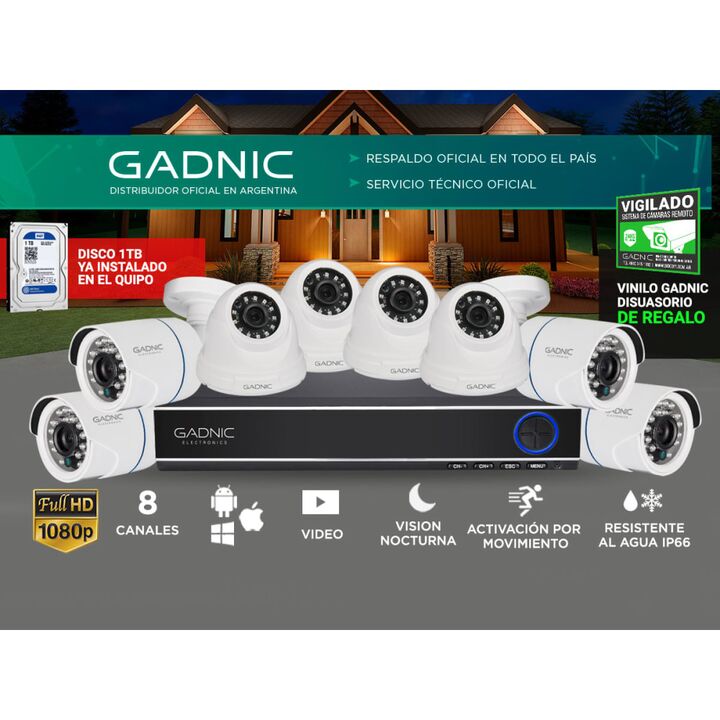 Kit de 8 Cámaras de Seguridad IP Full Hd GADNIC - P2PKIT14 + 3 P2P00033 + 1 P2P00025