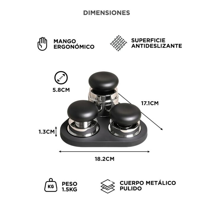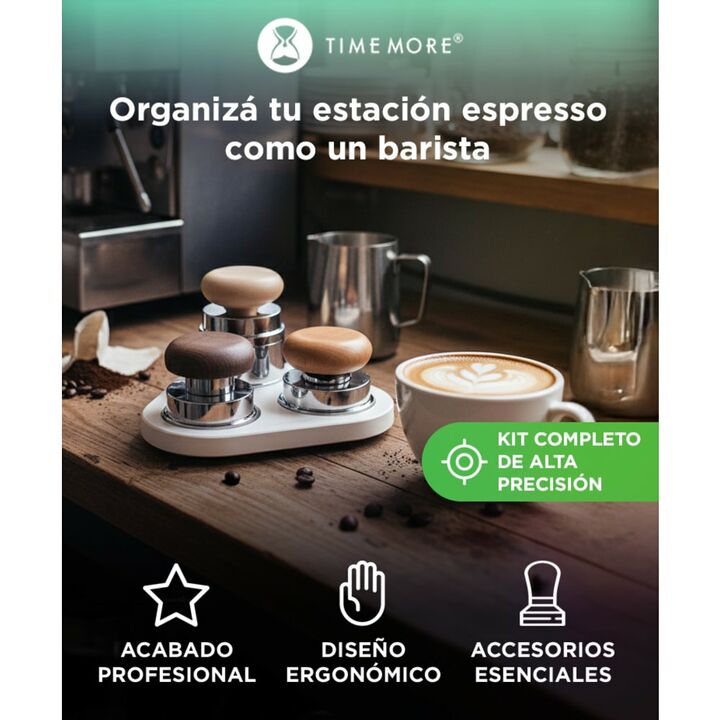 Kit completo para café espresso: Incluye tamper calibrado, WDT y dosificador por gravedad. Ideal para baristas o uso hogareño. Distribución uniforme del café: El WDT Tool mejora la extracción al eliminar grumos y nivelar la molienda. Compactado constante y preciso: Tamper con resorte interno que gar...