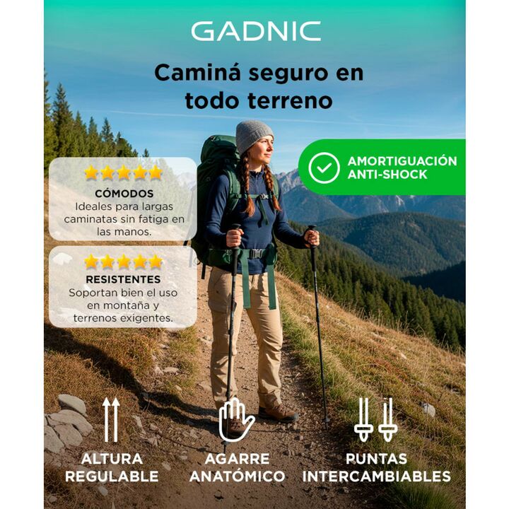 ¡Nuevo kit de bastones para trekking Gadnic! Los bastones de senderismo aportan una mayor estabilidad y confianza al andar, reduciendo el riesgo de caídas y resbalones en situaciones como superar obstáculos o caminar sobre superficies resbaladizas o poco estables al proporcionarnos dos puntos de apo...