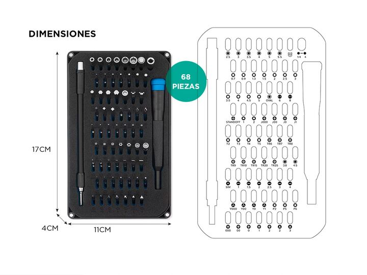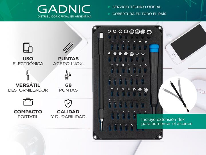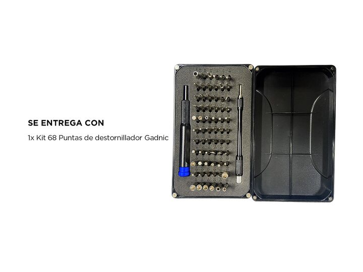 Nuevo Kit de Destornillador de 68 Piezas By Gadnic Este kit es ideal para quienes buscan un set herramientas versátil y completo, 68 piezas especialmente diseñadas para la reparación y mantención de dispositivos electrónicos Versatilidad: Este kit de destornillador incluye 68 puntas diferentes, lo q...