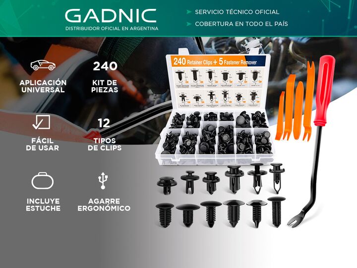 Gadnic presenta su nuevo kit de repuesto para autos de 240 piezas, una solución imprescindible para cualquier propietario de vehículo que desee mantener su automóvil en óptimas condiciones. Este kit incluye clips de retención a presión, remaches de plástico y sujetadores, ofreciendo una respuesta ef...