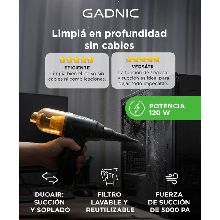 Descubrí la solución perfecta para mantener tu hogar, oficina e incluso tu automóvil impecables con nuestra potente y versátil máquina de limpieza de soplado y succión. Con una fuerza de succión de 5000PA y una potencia de 120W, esta máquina ofrece un rendimiento excepcional para una limpieza profun...