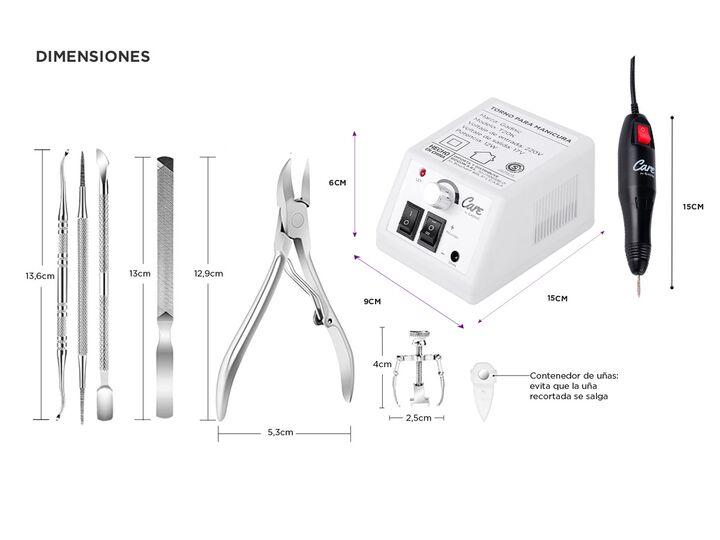 Este kit completo incluye un torno de manicura y un set de herramientas profesionales. Ideal para quienes buscan una solución integral para el cuidado de uñas. Las herramientas de pedicura están fabricadas en acero inoxidable de grado quirúrgico con acabado pulido, lo que las hace resistentes al óxi...