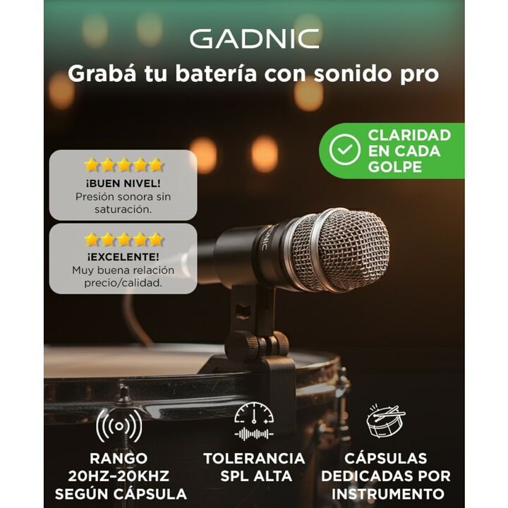 ¡Experimenta la potencia y precisión en tus grabaciones y presentaciones en vivo con el Set de Micrófonos para Baterías! El Micrófono dinámico P2, ideal para bombo, amplificador de bajo y bombardón de bajo, ofrece una respuesta de frecuencia impresionante de 20Hz a 16KHz, permitiendo una reproducció...
