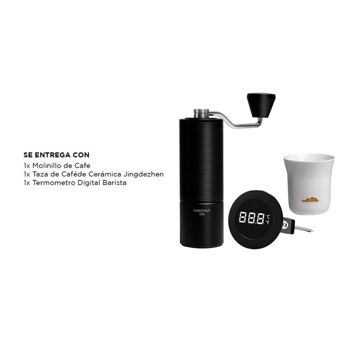 Molinillo de Café Timemore Manual Capacidad: 20-25g Configuraciones de molienda: 35 (cerveza turca a fría+) Materiales: Aluminio, Acero, Silicona Cuerpo y refuerzo: Aluminio fresado de 1 pieza Capacidad para: Espresso y filtro Ajuste de molienda: Escalonado Cuerpo texturizado: Para un fácil agarre M...