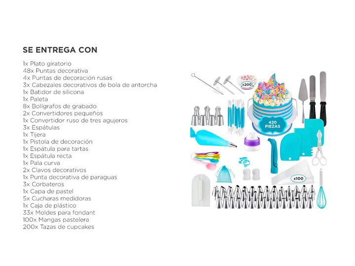 ¡Preparate para convertirte en un maestro de la repostería con nuestro increíble kit de repostería! Con una amplia variedad de herramientas y accesorios de alta calidad, podrás dar rienda suelta a tu creatividad y sorprender a tus amigos y familiares con creaciones espectaculares. Este kit incluye u...
