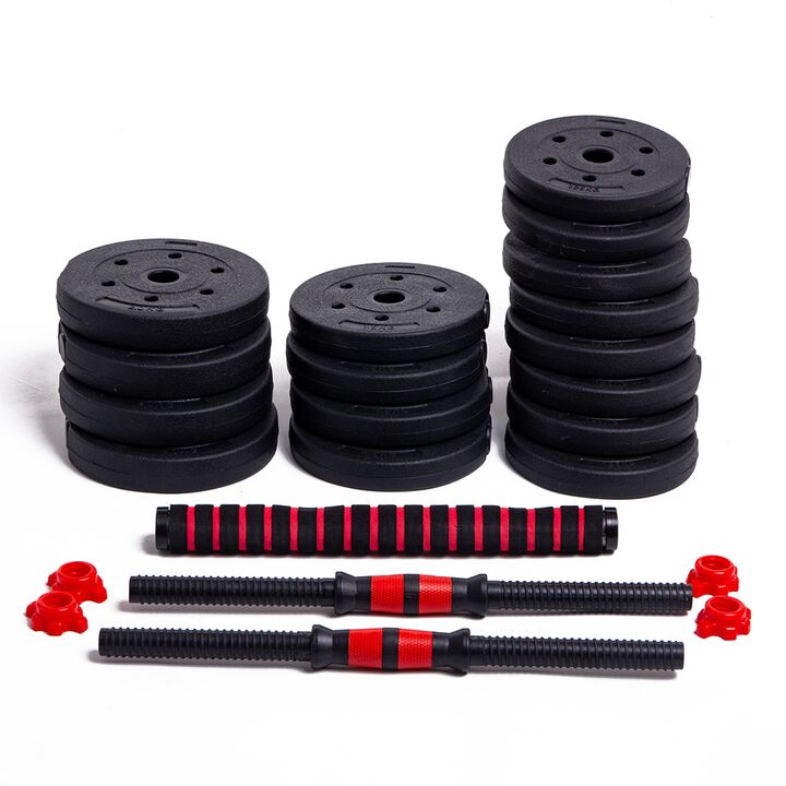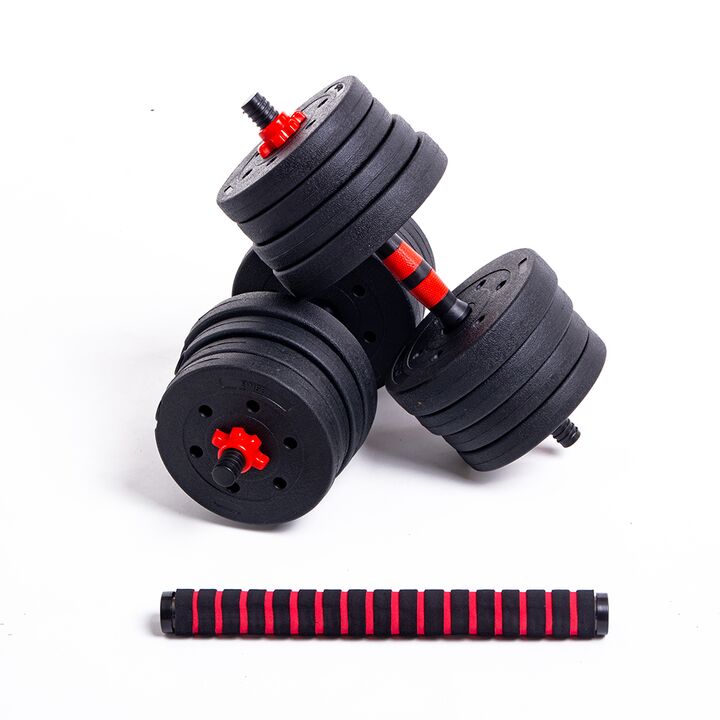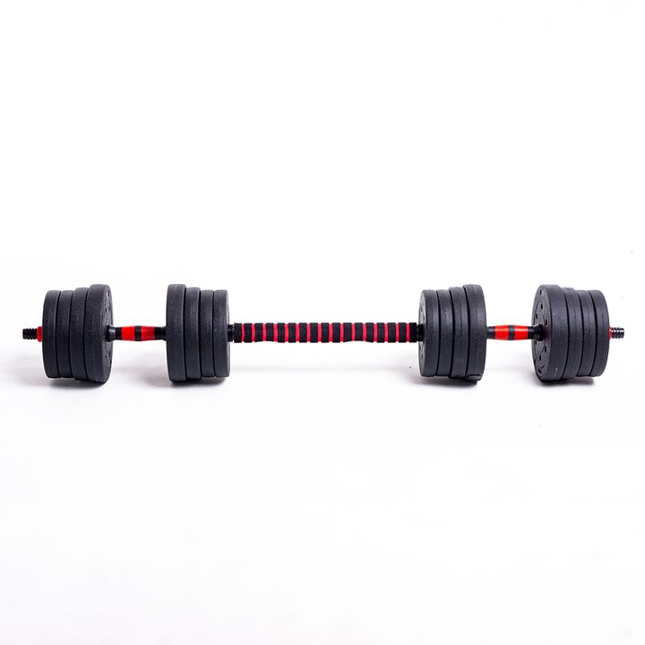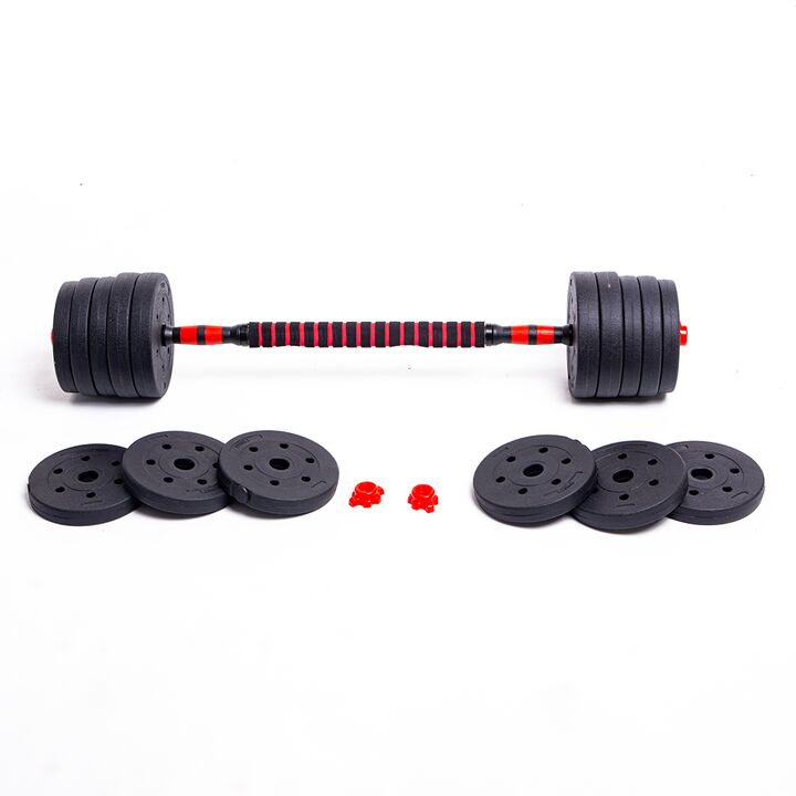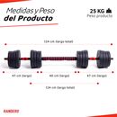 Kit de Mancuernas 25kg. Incluye: • 2 Mancuernas de 47cm de largo. • Una barra extensora de 40cm de largo. • 8 Discos de 1.25Kg • 4 Discos de 1.5Kg • 4 Discos de 2Kg • 4 Topes roscados. Datos logísticos: • EAN: 7797481914447 • Peso del producto: 25,3 Kg • Medidas de la caja: 60 x 25 x 18 cm • Peso de...