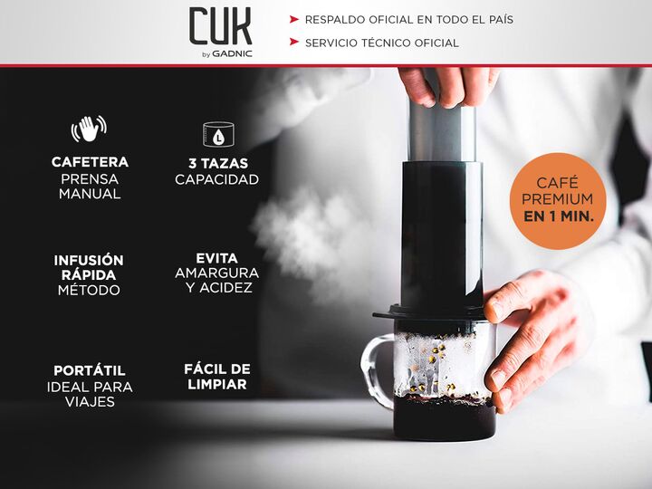 Descubre la Gadnic CUKPRESS, una innovadora prensa de café que utiliza un proceso de infusión rápida para preparar un café suave y delicioso, sin amargor y con baja acidez. Adiós a la prensa francesa; su rápida elaboración evita la amargura y la alta acidez generadas por el largo tiempo de infusión....