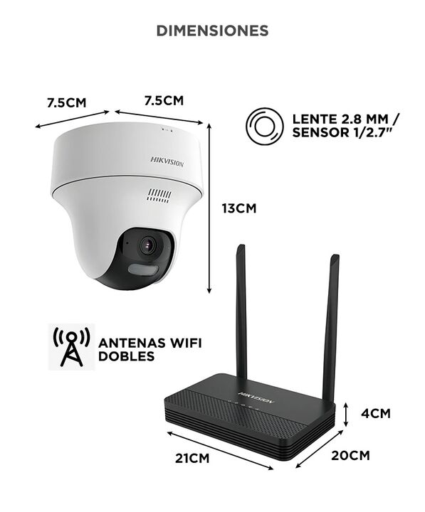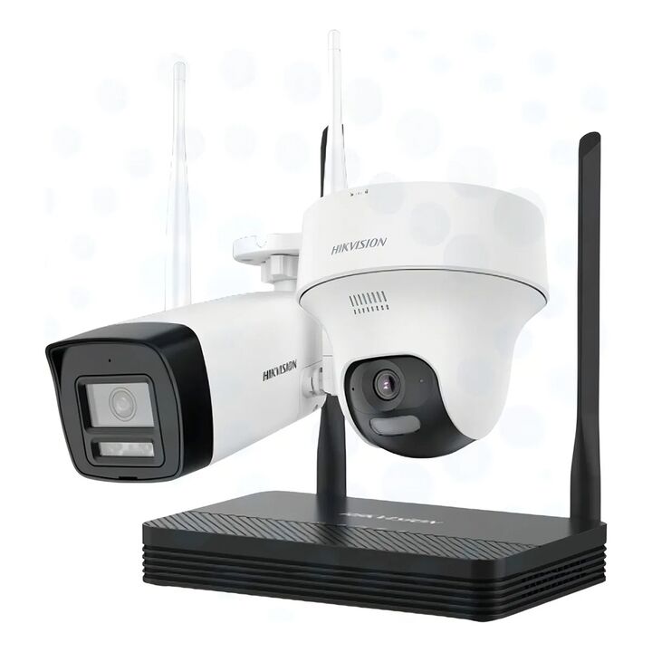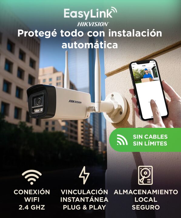 Seguridad inteligente y fácil de instalar El Kit de Seguridad WiFi Hikvision Easy Link NKS424W02H ofrece una solución completa y moderna para proteger tus espacios. Incluye un grabador NVR inalámbrico y dos cámaras Full HD 4MP (una bullet y una torreta PT), listas para usar con una instalación rápid...