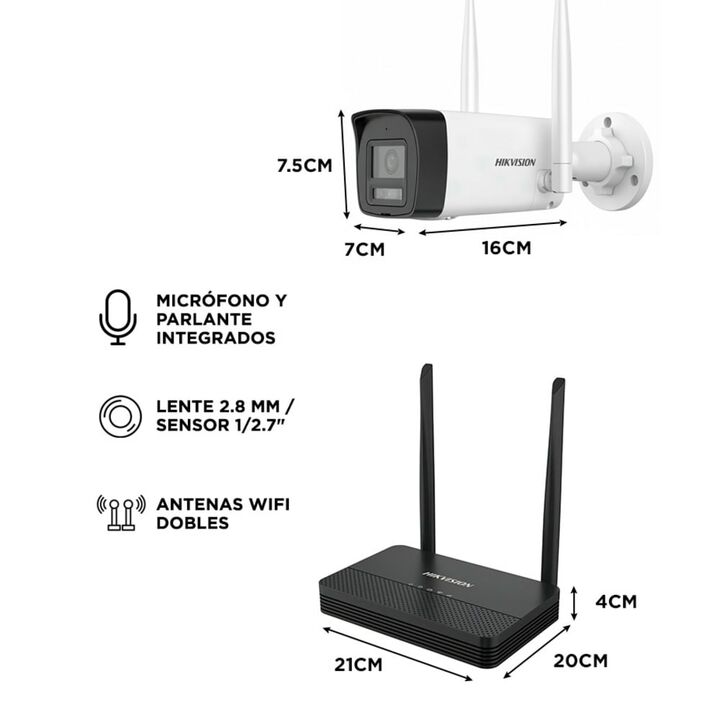Seguridad inteligente con instalación fácil El Kit de Cámaras WiFi Hikvision EasyLink NKS422W0H es la solución perfecta para proteger tu hogar o negocio. Con dos cámaras Bullet Full HD de 2MP, ofrece imágenes nítidas, visión nocturna avanzada y un sistema inalámbrico fácil de instalar. Control total...