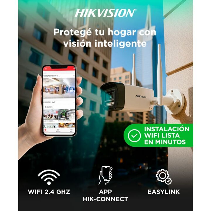 Seguridad avanzada y fácil de instalar El Kit Hikvision EasyLink DS-J142I(STD)/NKS422W0H combina tecnología de videovigilancia profesional con una instalación sencilla y totalmente inalámbrica. Consta de dos cámaras Bullet de 2 MP y un grabador NVS WiFi, ideales para hogares, oficinas o negocios que...