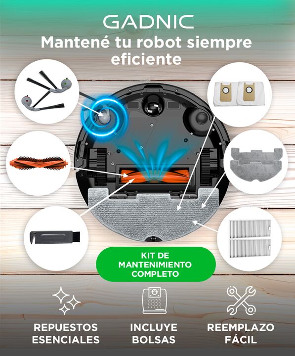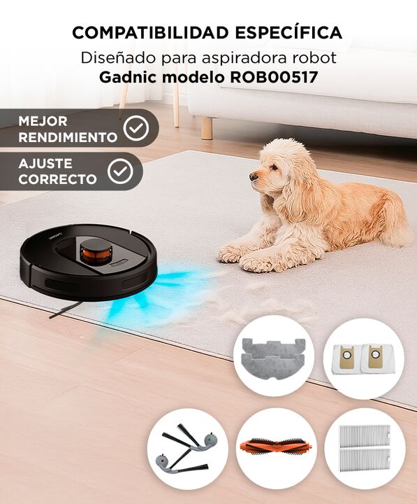 Kit de mantenimiento para aspiradora robot Gadnic: El kit de accesorios de repuesto Gadnic ROB00517 permite realizar el mantenimiento periódico del robot aspirador. Incluye los componentes necesarios para conservar un funcionamiento correcto y estable. Recuperá el rendimiento de limpieza original: E...
