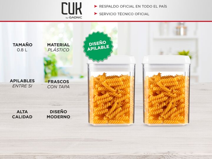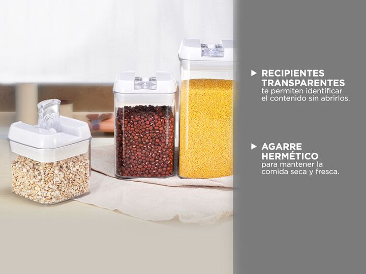 Diseñados para facilitar tu vida en la cocina, estos recipientes te permiten identificar su contenido de un vistazo gracias a su material plástico de alta calidad y libre de BPA. Su claridad te ofrece la comodidad de saber lo que hay dentro sin necesidad de abrirlos, lo que ahorra tiempo y esfuerzo....