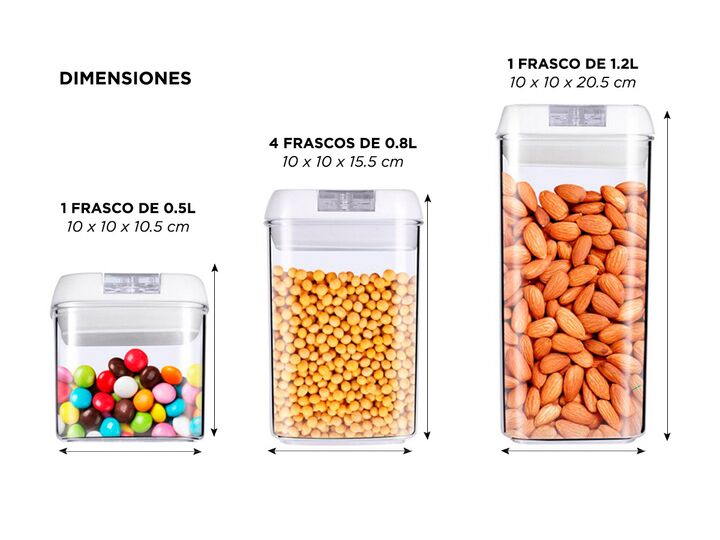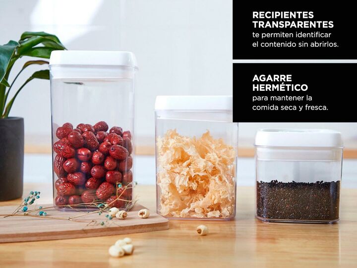 Los recipientes transparentes te permiten identificar el contenido. Hecho de material libre de BPA de alta calidad, nuestros recipientes herméticos son duraderos. El plástico de estos recipientes es muy claro, puede identificar el contenido sin abrirlos. Agarre hermético para mantener la comida seca...