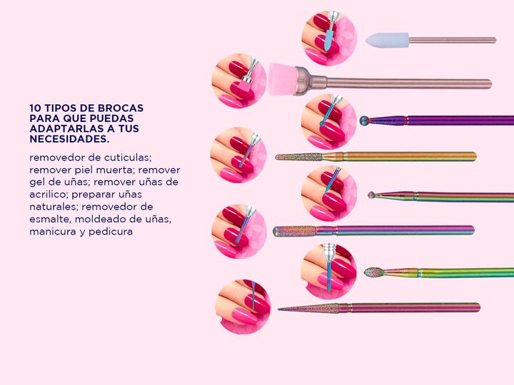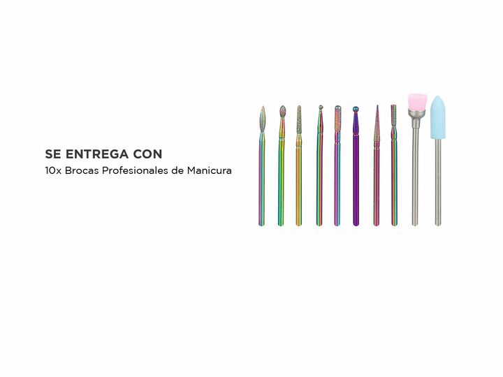 Nuevo set de 10 brocas para torno de manicura y pedicura Diseño tornasolado Trabajar con herramientas profesionales, con un diseño único es posible. Este set de 10 brocas de material premium tornasoladas hará que tu torno luzca profesional y hermoso, al mismo tiempo Kit completo y eficiente Las broc...