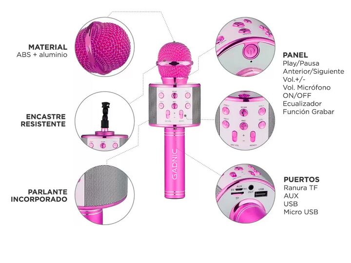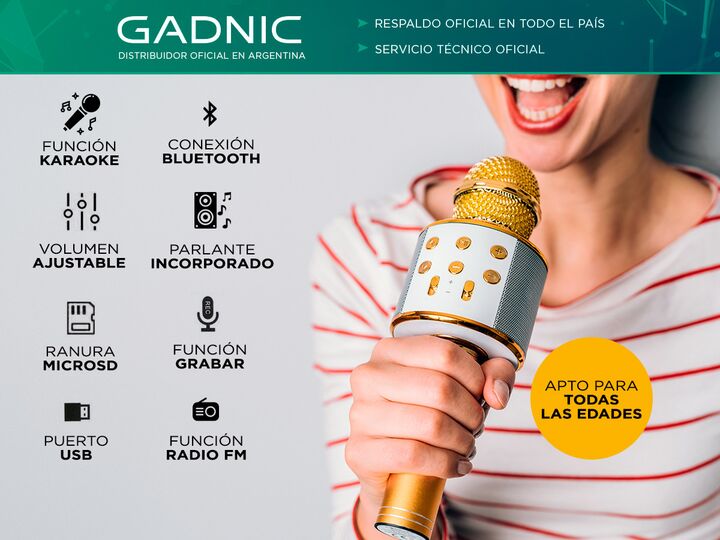Micrófono Gadnic KM-01 Karaoke Inalámbrico Bluetooth c/ Efectos de Voz - Azul Modelo KM-01 original y renovado Apto para todas las edades Función Karaoke Parlante Incorporado Bluetooth incorporado Volumen Ajustable Función Grabar Radio FM incorporada Portátil y resistente Excelente calidad Alta sens...