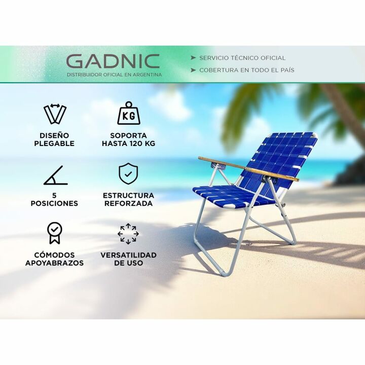 5 Posiciones Reclinables: Adaptá tu descanso con su respaldo ajustable en cinco niveles. Ideal para leer, tomar sol o simplemente relajarte al aire libre. Diseño Plegable y Liviano: Se pliega fácilmente y ocupa poco espacio, permitiéndote llevarla a todos lados: playa, camping, jardín o escapadas de...