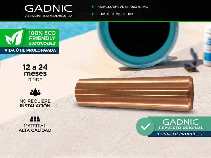Especificaciones Repuesto Para Ionizador Solar Gadnic Barra de Cobre 8cm - REPIONI1 Material: Cobre Largo de la barra: 80 [mm] Duración estimada de 12 a 24 meses. Diámetro de la barra: 25 [mm]