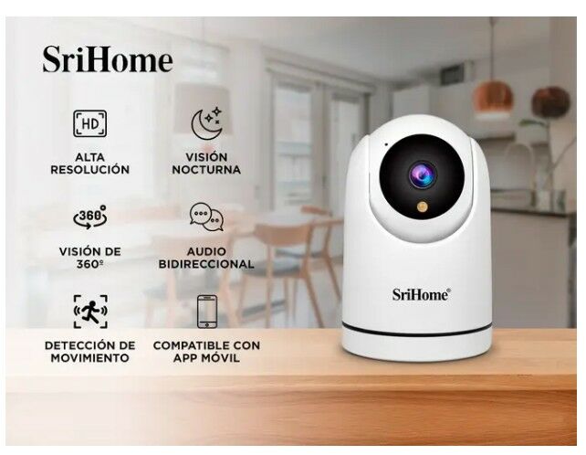 Nueva Cámara de Seguridad Srihome 1080P WiFi con inclinación panorámica: Resolución Alta: Captura imágenes en alta definición (HD) para garantizar detalles claros y nítidos. Ideal para identificar rostros y objetos con precisión. Movimiento Panorámico y de Inclinación: Permite una visión de 360° hor...