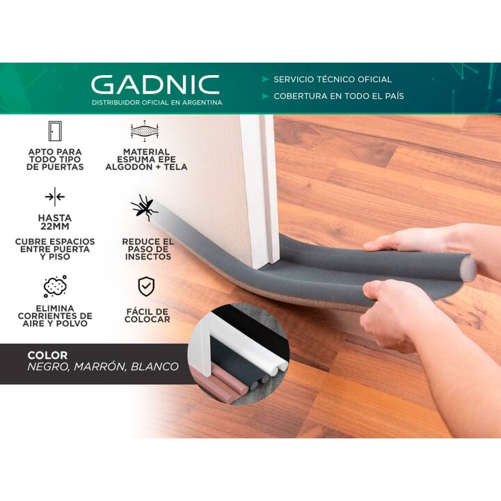 Nuevo Zócalo Burlete para puerta de Gadnic El zócalo doble de Gadnic se coloca en segundos sin necesidad de atornillarlo ni pegarlo. Evita la pérdida de calefacción en invierno y mantiene la refrigeración del ambiente en verano, generando ahorro energético todo el año. Ideal para mantener tu puerta ...