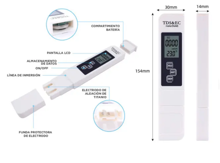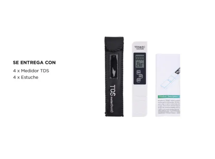 Optimiza la calidad de tu agua con el Kit x4 de Medidores Digitales de Agua TDS y Temperatura. Estos dispositivos son ideales para evaluar la pureza y la temperatura del agua en diversos entornos, como el hogar, la oficina o laboratorios. Cada medidor es fácil de usar y ofrece resultados precisos, p...