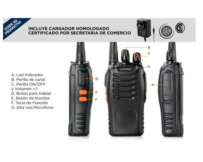 El Handy Gadnic WK99U tiene un rango de frecuencia UHF de 400-470MHz, capacidad 16 canales y rango de comunicación de 6 a 10 km. Comunicate con quién vos quieras con su autonomía de 8 horas de batería. El Handy más confiable, estable y más vendido del mercado con Batería Incluida, Auricular Manos Li...