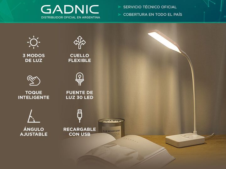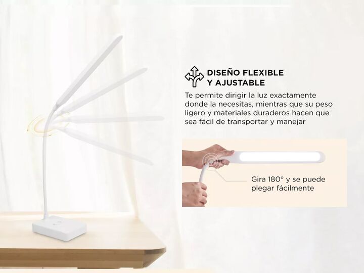 Illuminate tu espacio de trabajo con nuestra lámpara de escritorio versátil y moderna. Con tres opciones de luz -blanca, cálida y natural- y un total de 30 LEDs, podes ajustar fácilmente la temperatura y el brillo para adaptarse a tus necesidades específicas. Su diseño flexible y ajustable te permit...